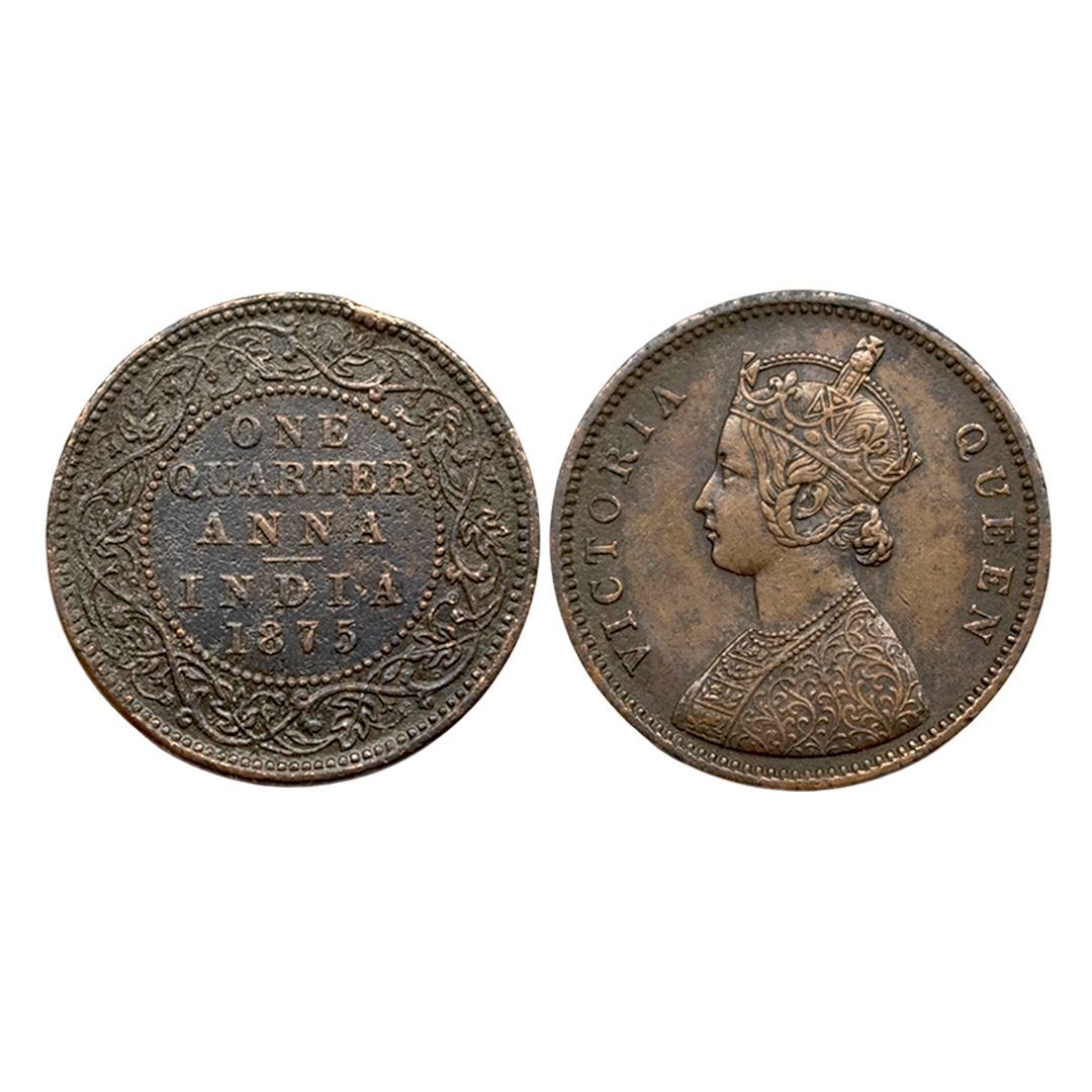 Victoria Queen, Copper One Quarter Anna, 1875,