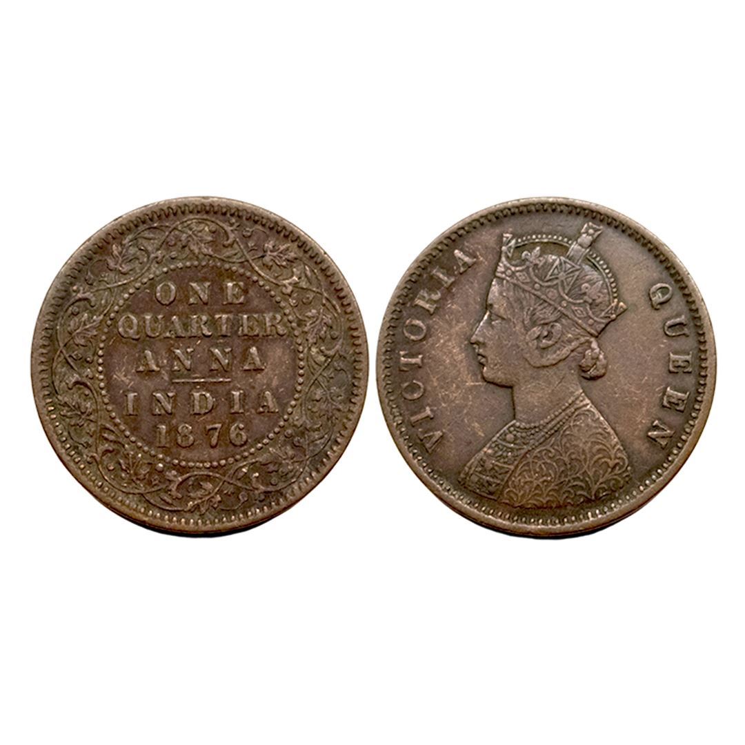 Victoria Queen, Copper One Quarter Anna, 1876, Calcutta Mint, Extremely Fine, Scarce.
