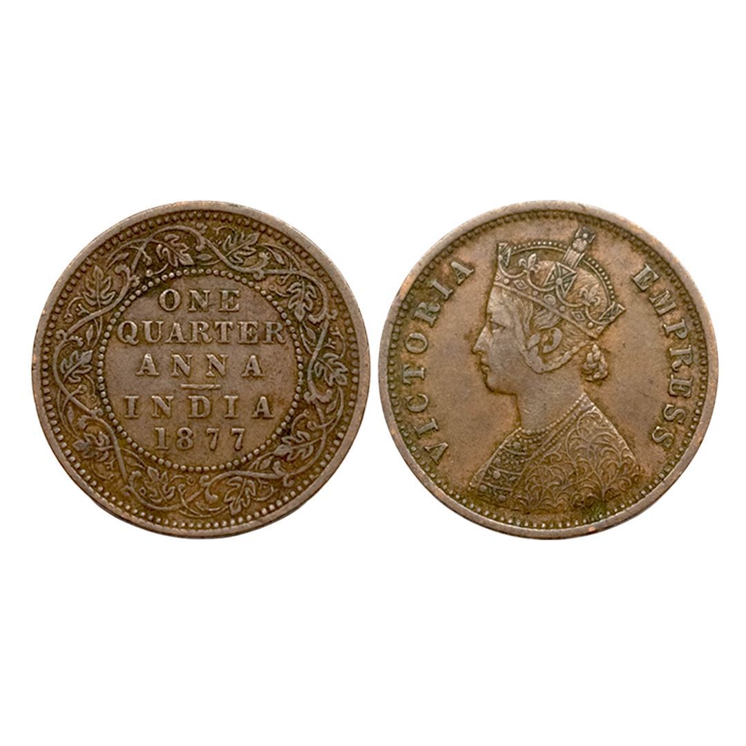 Victoria Queen, Copper One Quarter Anna, 1877,