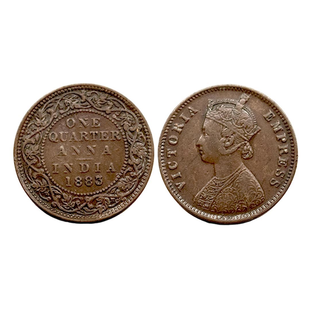 Victoria Queen, Copper One Quarter Anna, 1883