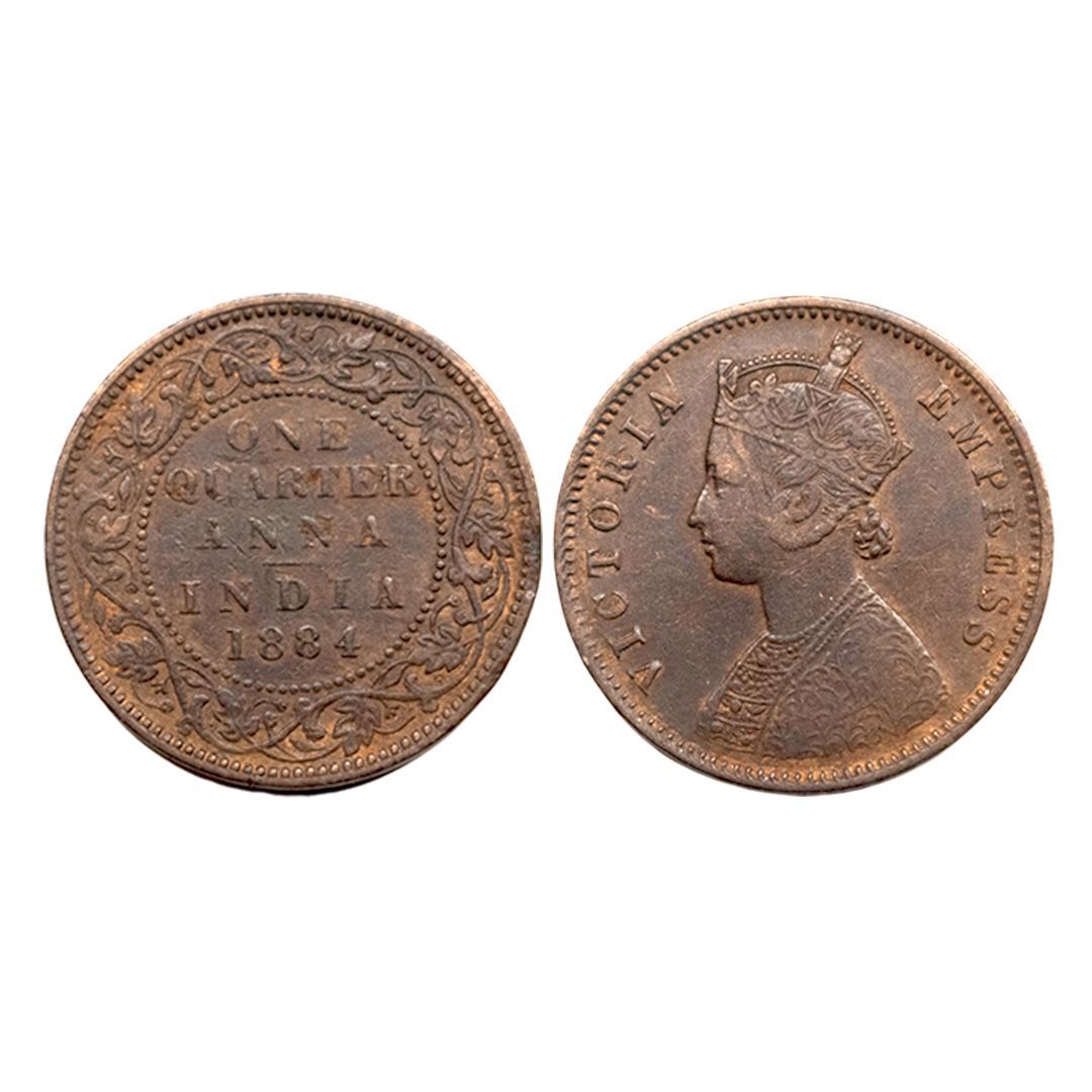 Victoria Queen, Copper One Quarter Anna, 1884,