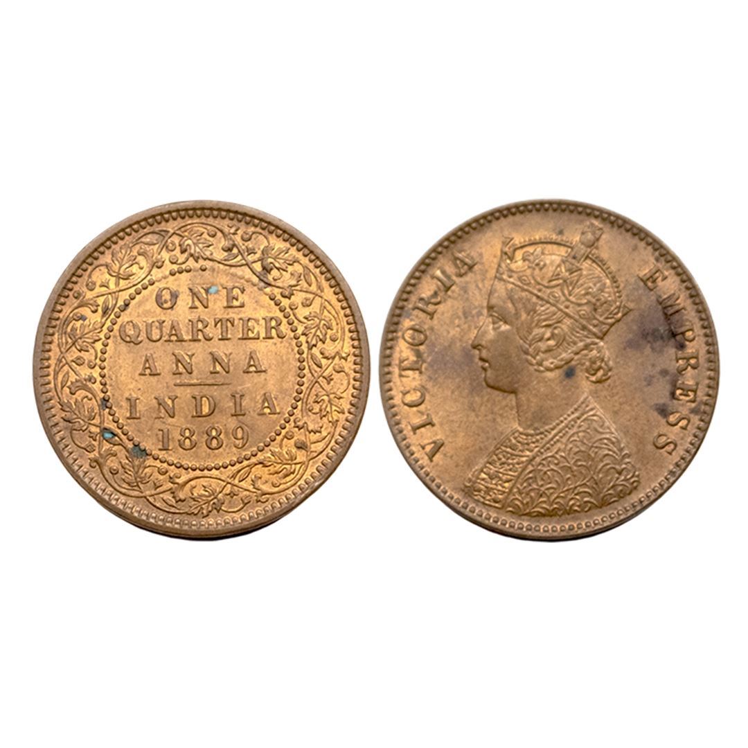 Victoria Queen, Copper One Quarter Anna, 1889,