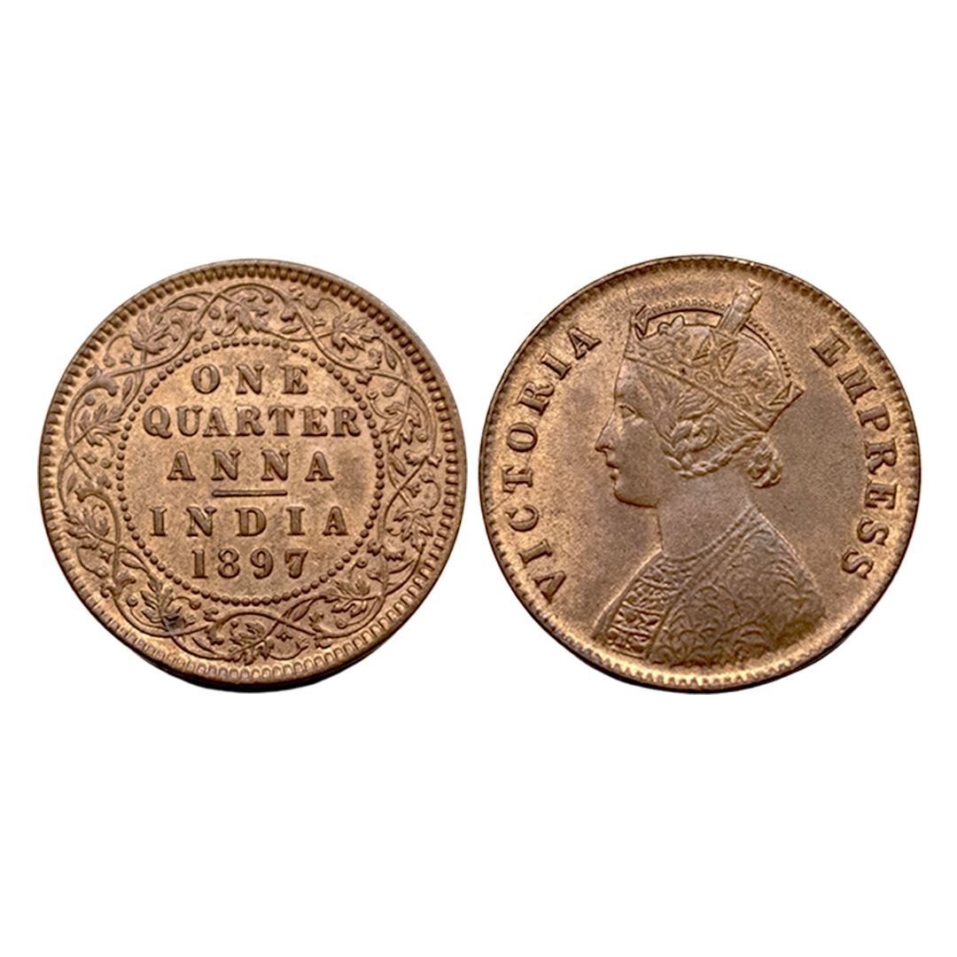 Victoria Queen, Copper One Quarter Anna, 1897,