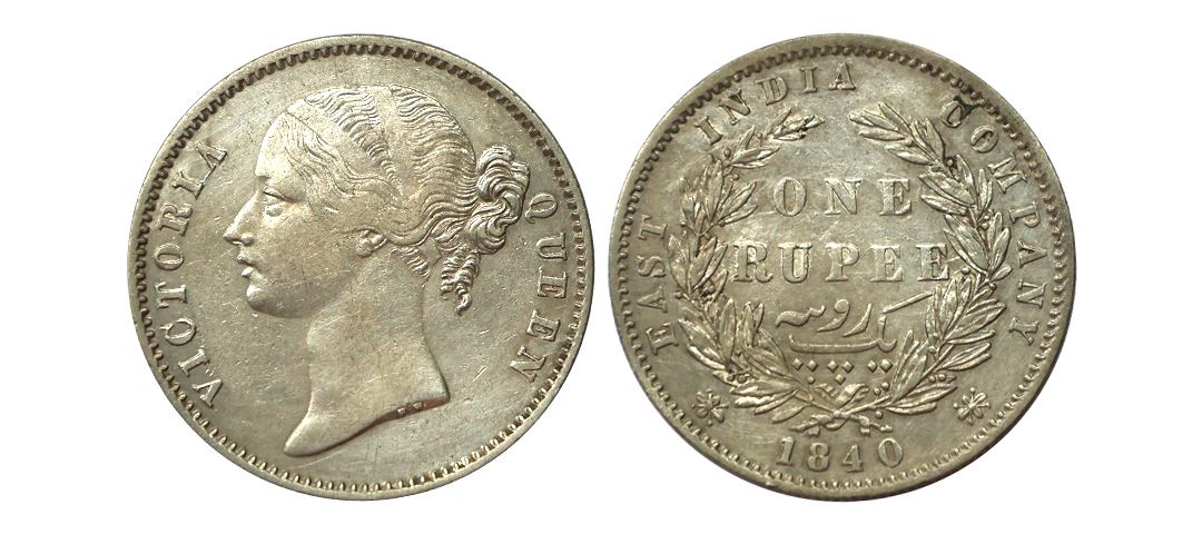 Victoria Queen, DL, Silver Rupee, 1840, Calcutta/Bombay Mint