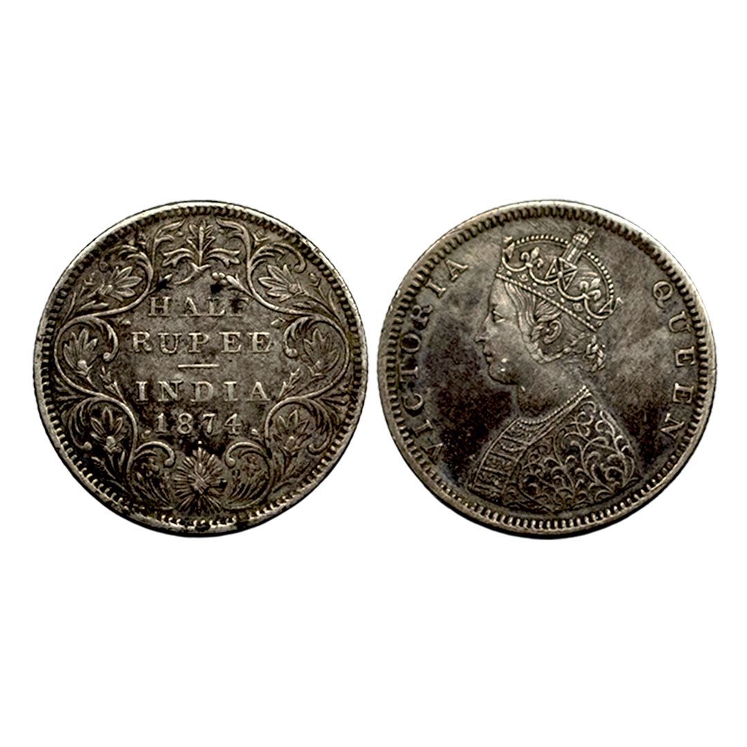 Victoria Queen, Silver 1/2 Rupee, 1874,