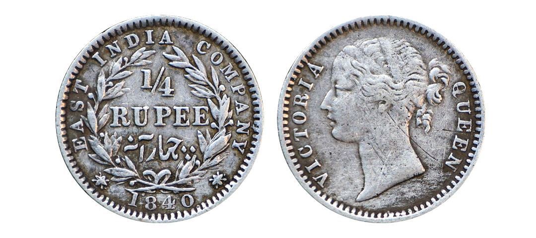 Victoria Queen, Silver 1/4 Rupee, 1840