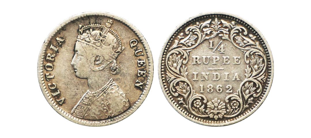 Victoria Queen, Silver 1/4 Rupee, 1862