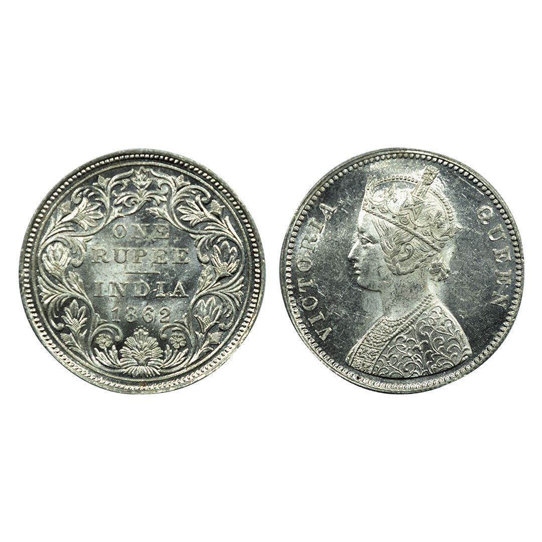 Victoria Queen, Silver One Rupee, 1862, 0/6 dots, UNC.