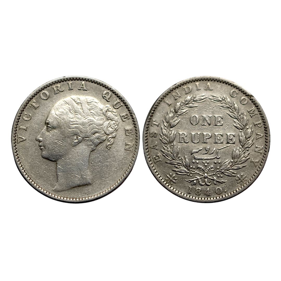 Victoria Queen, Silver Rupee, 1840, Continuous Legend, Madras Mint