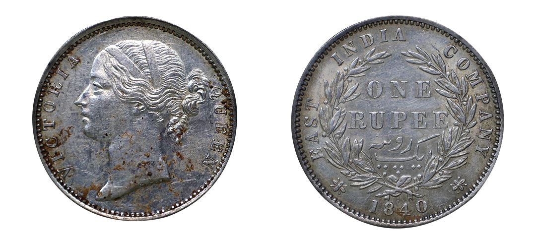 Victoria Queen, Silver Rupee, 1840, W.W.B Raised,