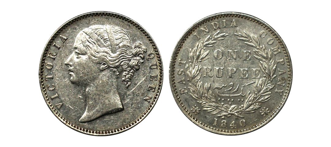 Victoria Queen, Silver Rupee, 1840, Divided legends, Madras mint, W.W.S., 28 berries, Rare.