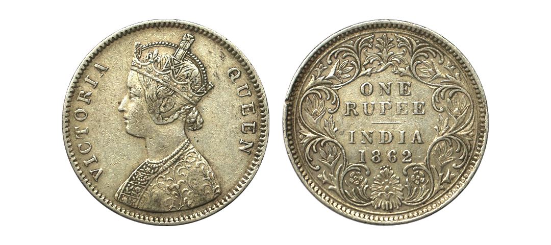 Victoria Queen, Silver Rupee, 1862, A/I, 0/4 dots