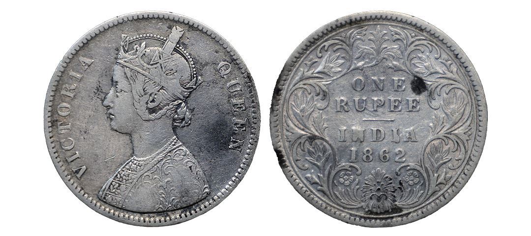 Victoria Queen, Silver Rupee, 1862, A / I, Error in the word "N" of "INDIA".