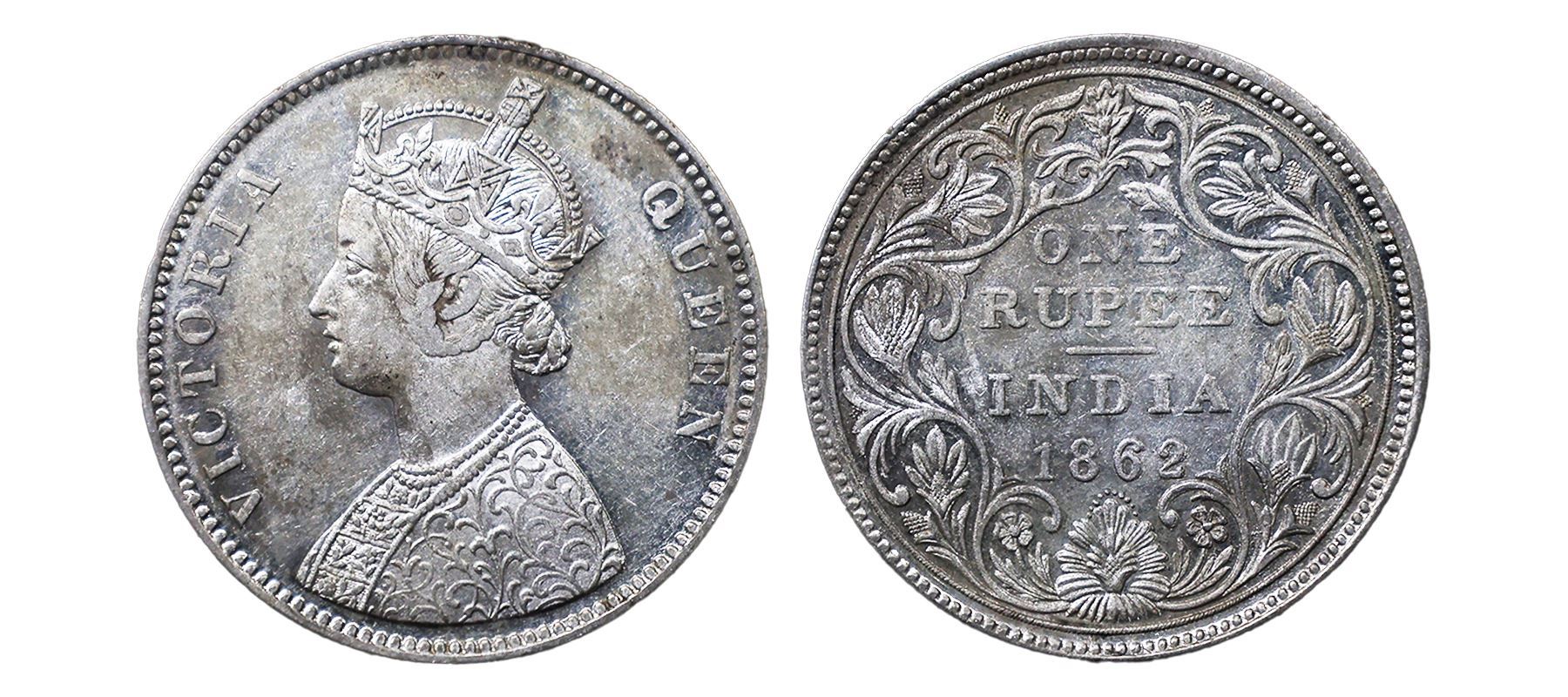 Victoria Queen, Silver Rupee, 1862, A/II, 0/10+1 dots, Uncirculated, Very Rare in this grade.