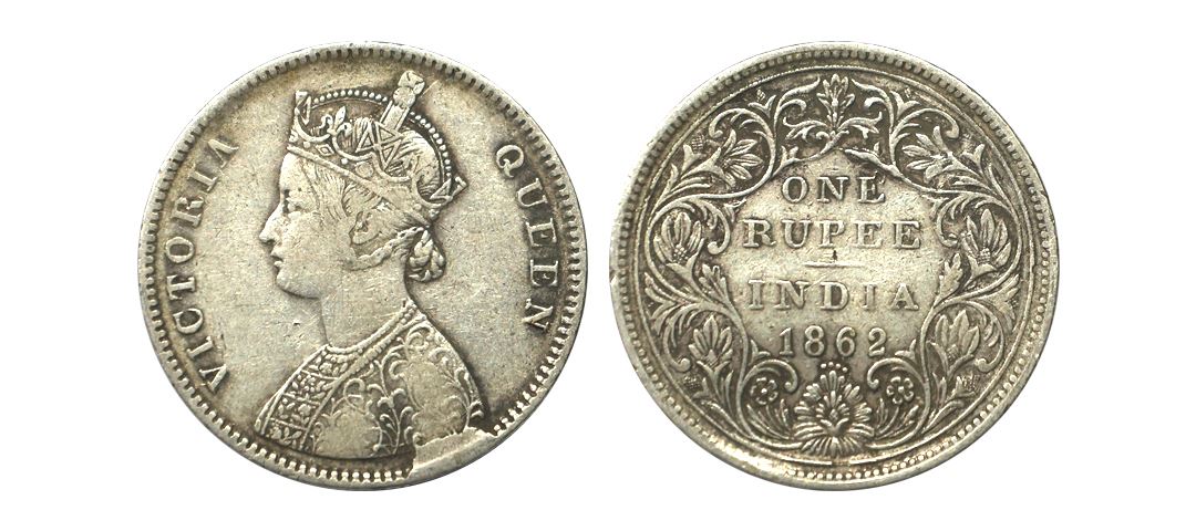 Victoria Queen, Silver Rupee, 1862, A/II,0/4 DOTS, die cud error on obverse, rare.