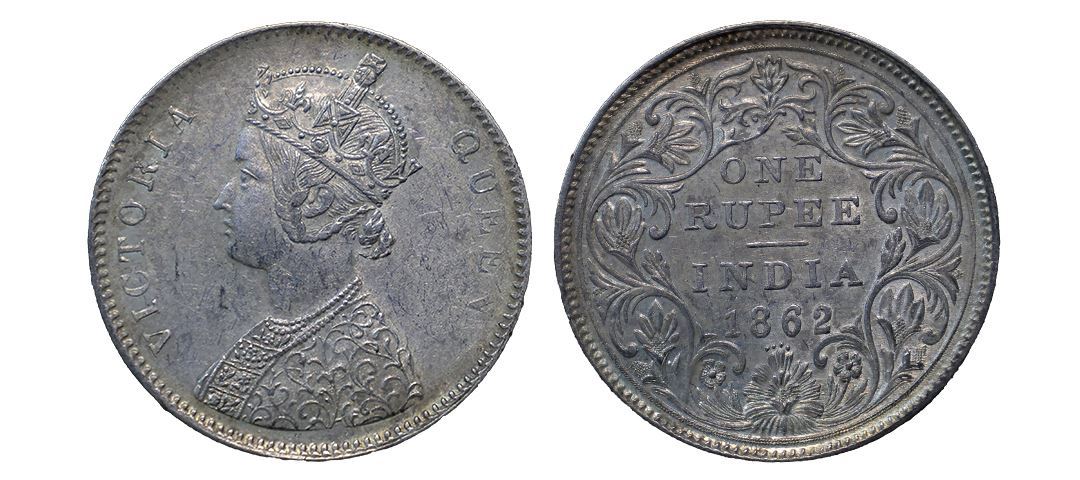 Victoria Queen, Silver Rupee, 1862, A/II, 0/4 dots.