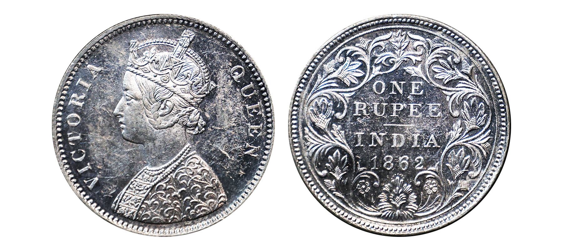 Victoria Queen, Silver Rupee, 1862, A/II, 0/7 dots, Brilliant Uncirculated