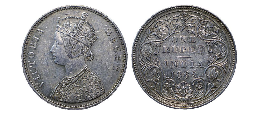 Victoria Queen, Silver Rupee, 1862, A / II, 0/7 dots.