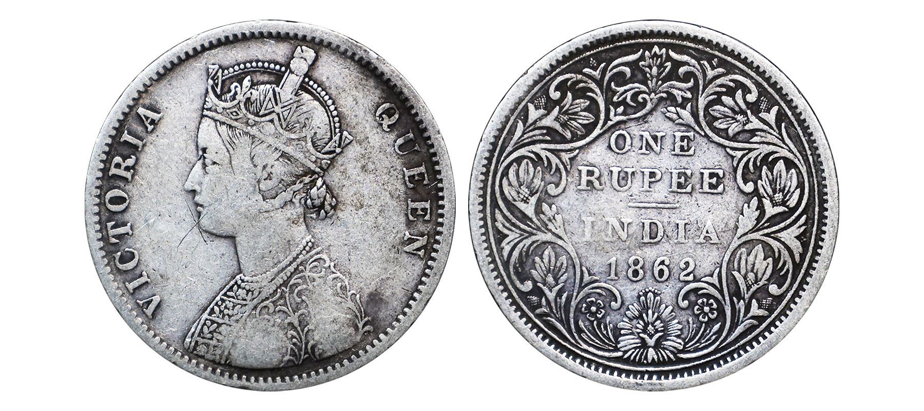 Victoria Queen, Silver Rupee, 1862, A/II, 0/7 dots,