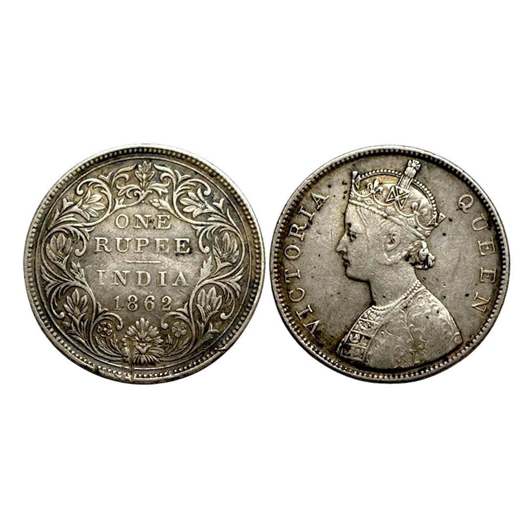Victoria Queen, Silver Rupee, 1862, B/II 0/3 dots,