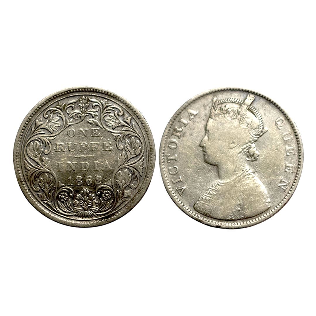 Victoria Queen, Silver Rupee, 1862, B/II 0/7 dots,