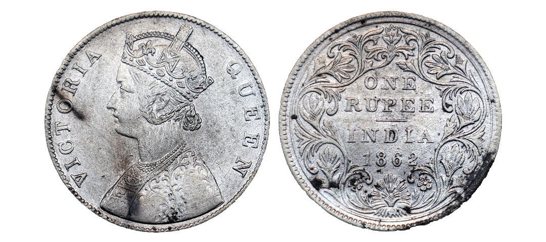Victoria Queen, Silver Rupee, 1862, Bombay Mint, 30.4 mm diammeter instead of 30.9mm