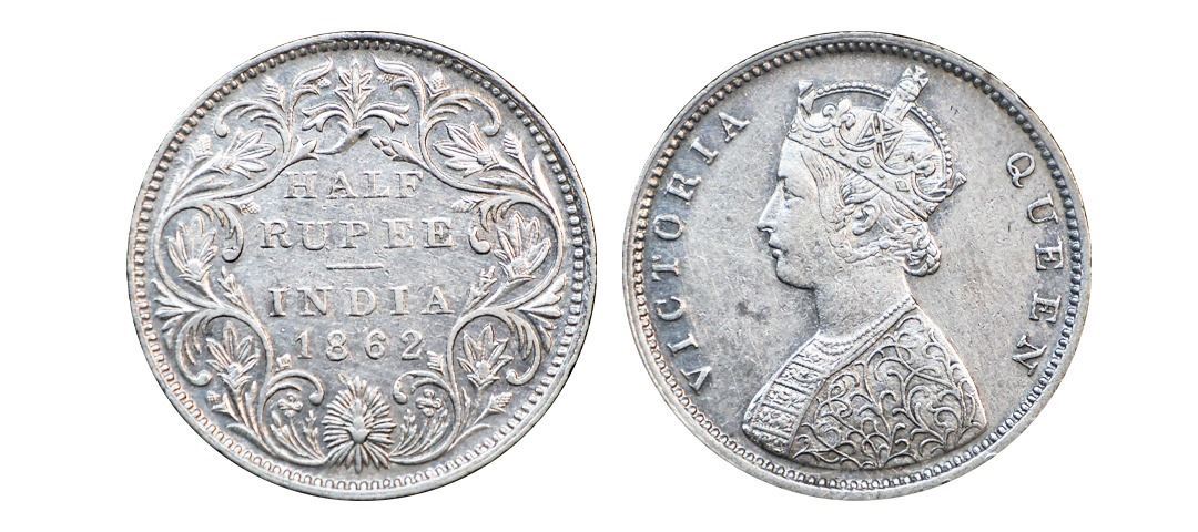 Victoria Queen, Silver ½ Rupee, 1862, Calcutta Mint,