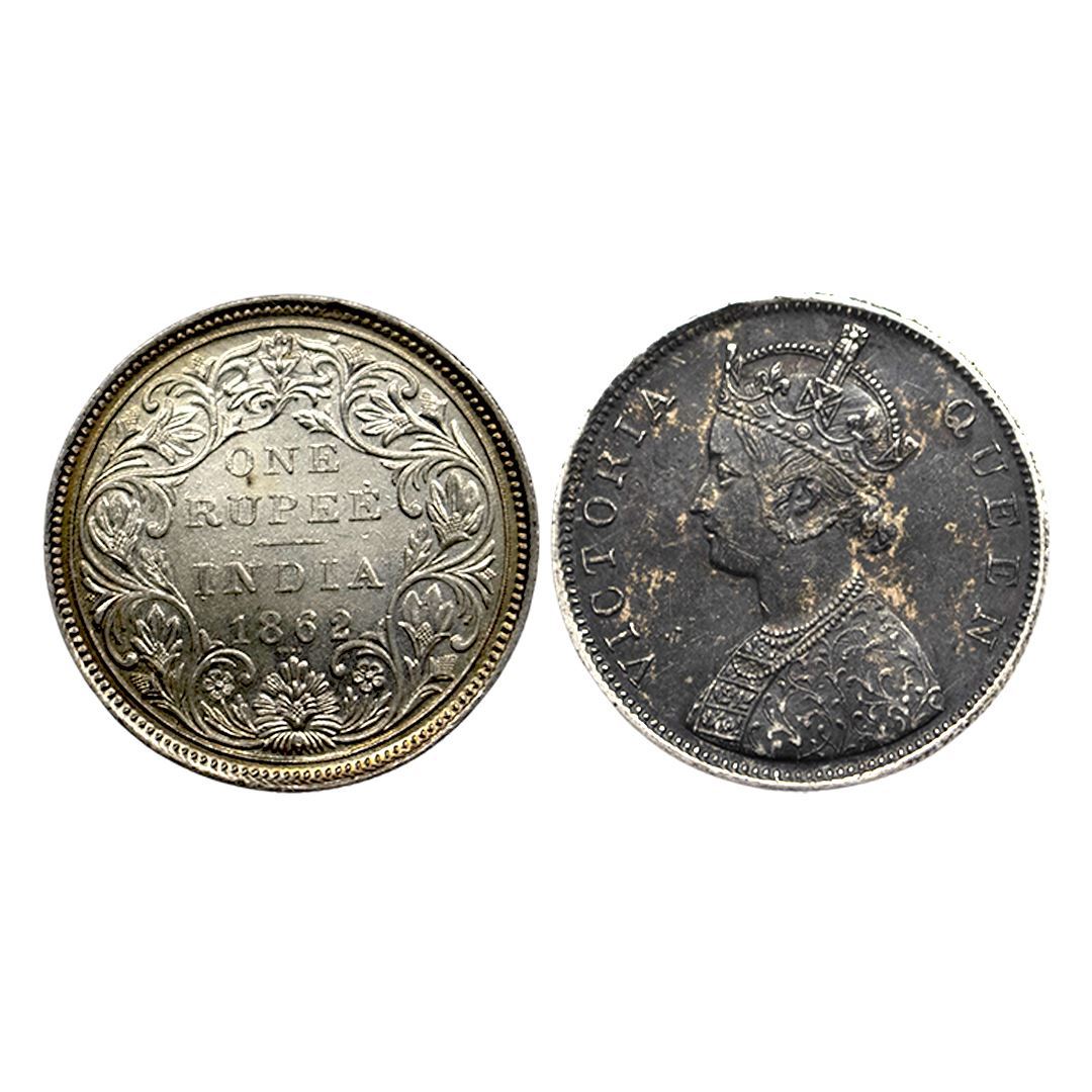 Victoria Queen, Silver Rupee, 1862, B/II, 0/4 Dots, Straight Line, About Uncirculated, Very Scarce.