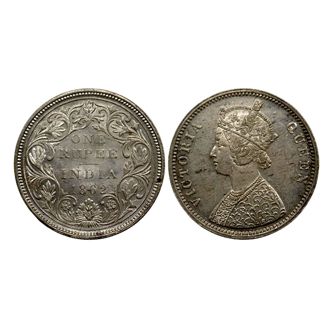 Victoria Queen, Silver Rupee, 1862, A/II, 0/7 Dots, Uncirculated, Scarce.