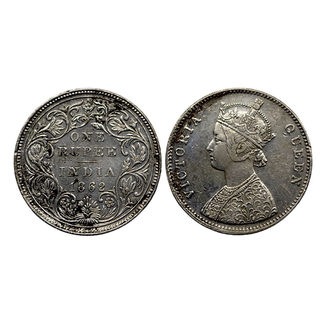 Victoria Queen, Silver Rupee, 1862, A/II, 0/8 Dots, Extremely Fine+, Rare.