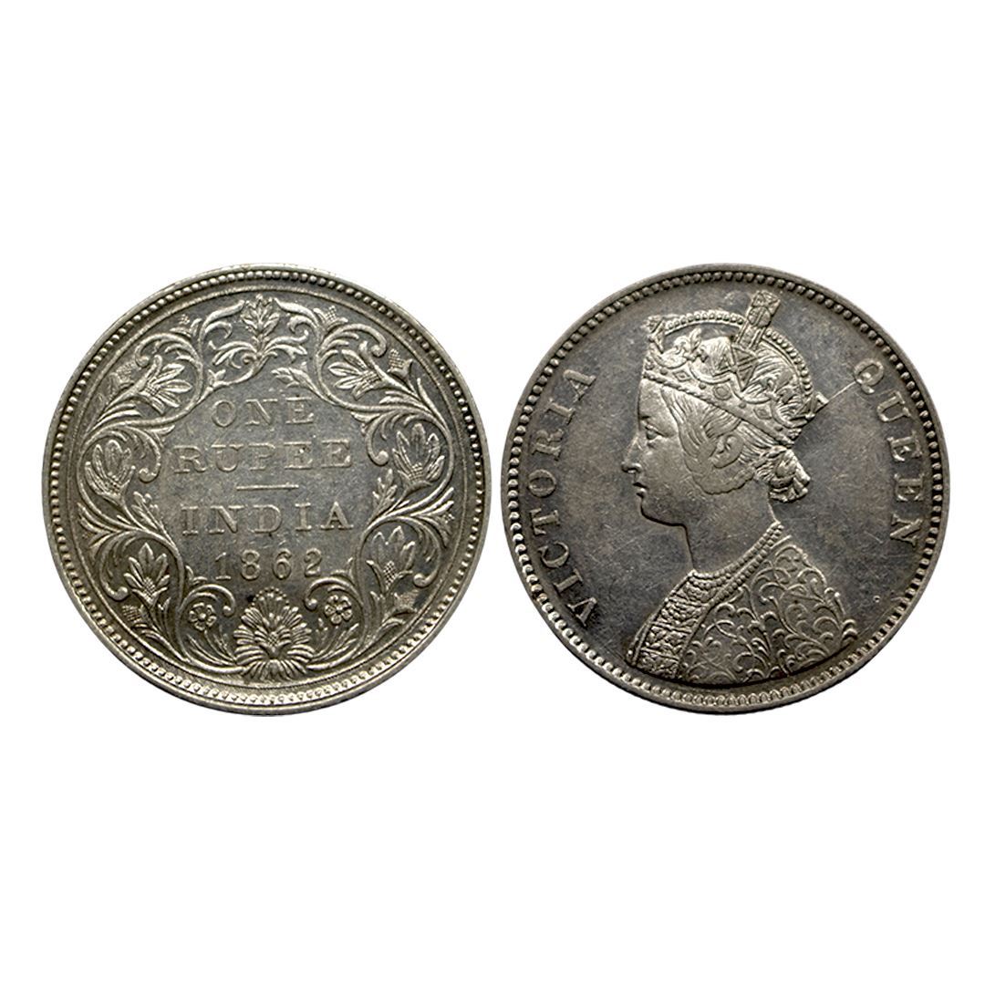 Victoria Queen, Silver Rupee, 1862, A/II, 0/10 Dots, Extremely Fine, Very Scarce.