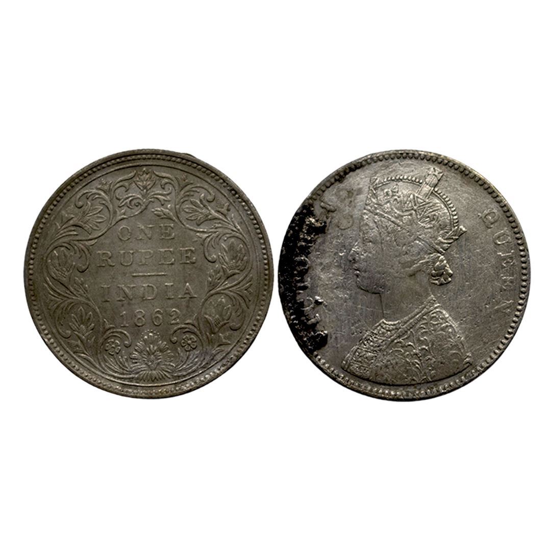 Victoria Queen, Silver Rupee, 1862, A/II, 0/12 Dots, Fine, Very Rare.