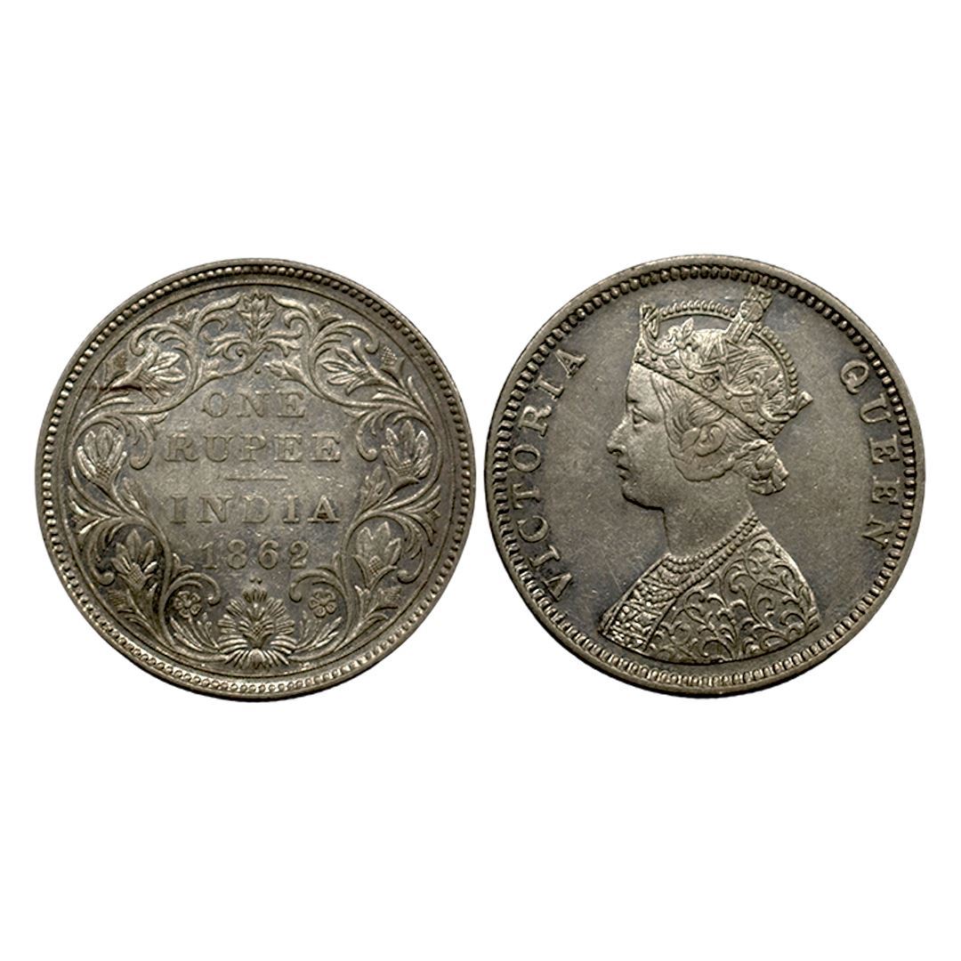 Victoria Queen, Silver Rupee, 1862, C/II, 1/2 Dots, About Extremely Fine, Very Scarce.