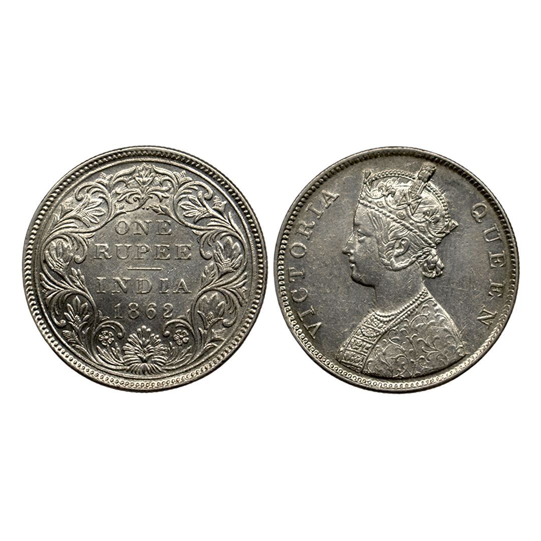 Victoria Queen, Silver Rupee, 1862, B/II, 2/o, Dots, About Uncirculated, Very Scarce.