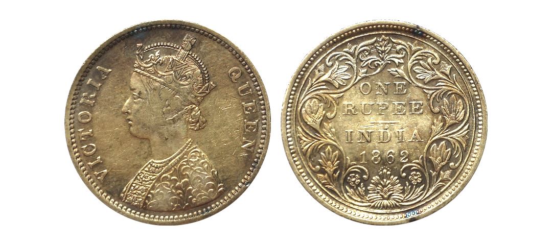 Victoria Queen, Silver Rupee, 1862, Bombay Mint, Obv: A / Rev: II, 0/7 Dots, Very Fine.