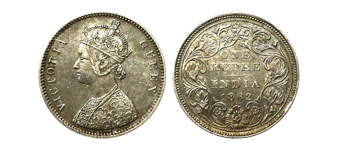 Victoria Queen, Silver Rupee, 1862, A/II, 0/4 dots, Extremely Fine, Very scarce.