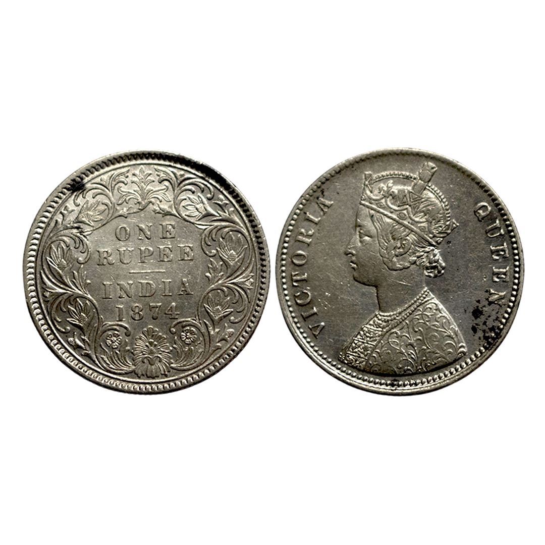 Victoria Queen, Silver Rupee, 1874, A/I, Calcutta Mint,