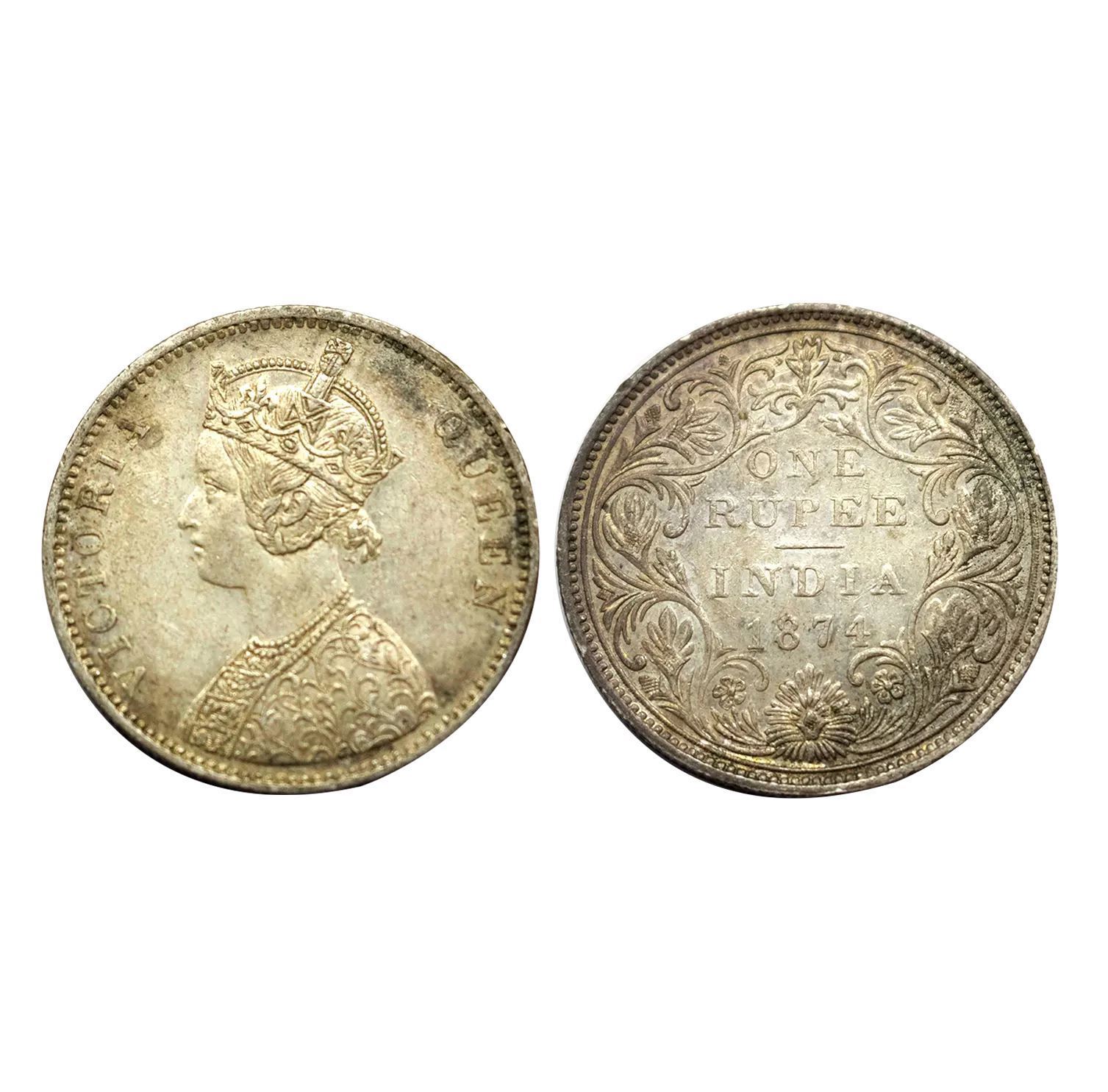 Victoria Queen, Silver Rupee, 1874, Obv. A/Rev. II, Bombay Mint, About Extremely Fine, Scarce.