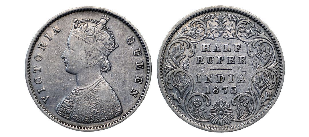 Victoria Queen, Silver ½ Rupee, 1875, Calcutta Mint, A / I No mint mark, (Prid 260).