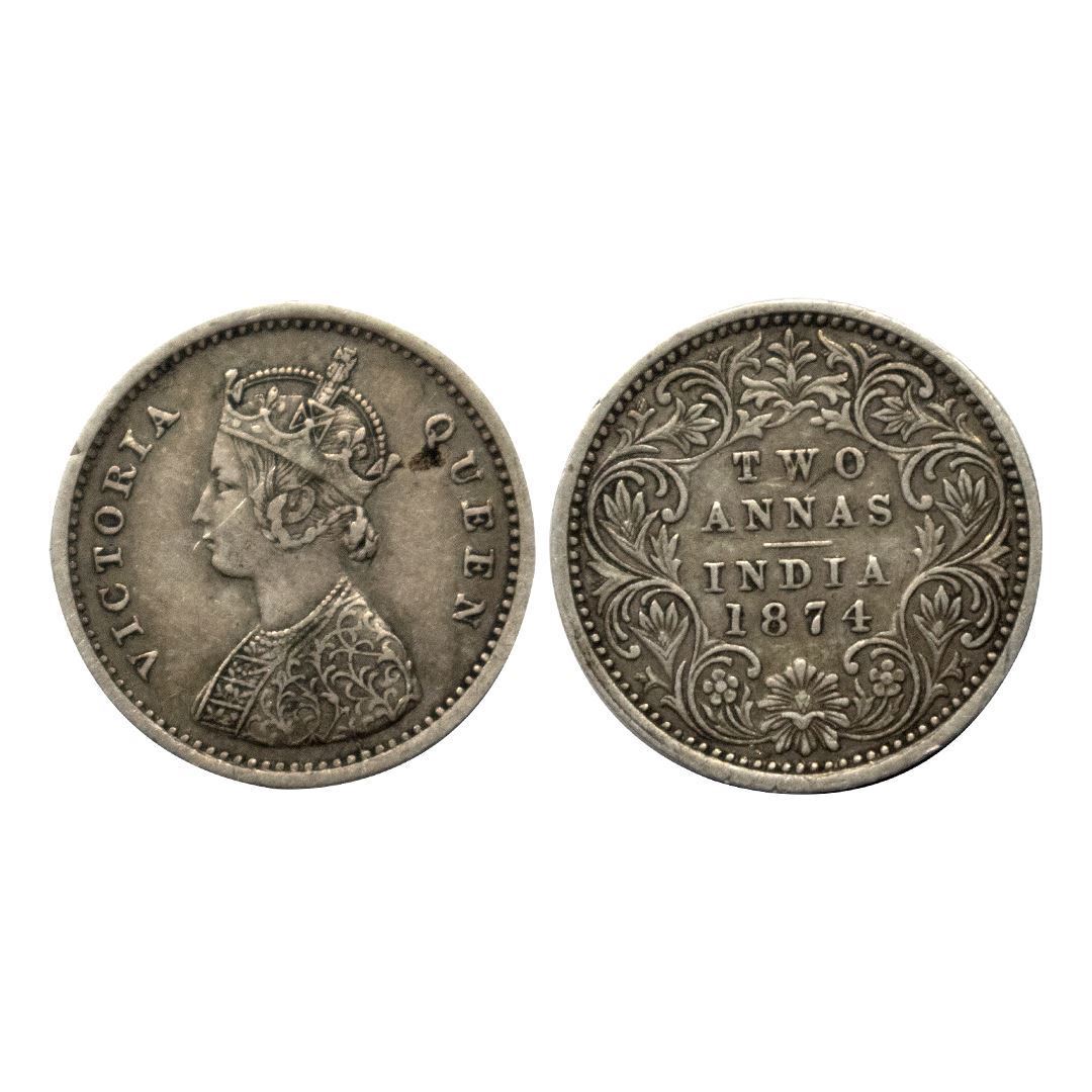 Victoria Queen, Silver Two Annas, 1874, Calcutta Mint.