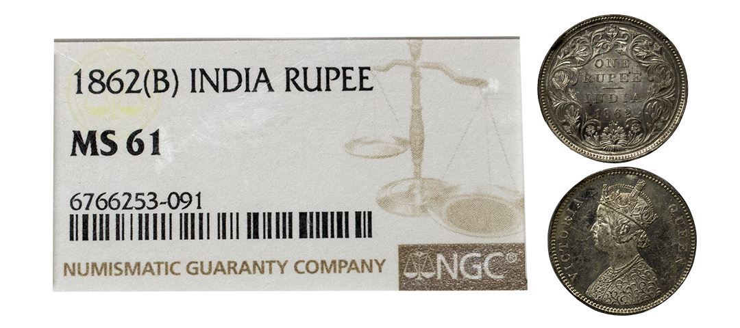 Victoria Queen, silver rupee, 1862, Bombay mint, A/II/0/4, without initial J, PR 79; GK 308. NGC gra