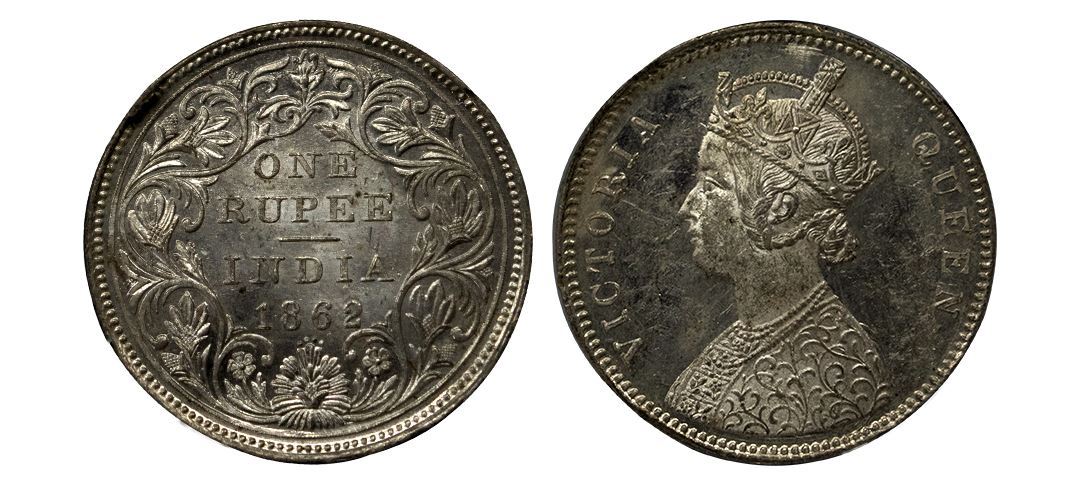 Victoria Queen, silver rupee, 1862, Bombay mint, A/II/0/4, without initial J, PR 79; GK 308.