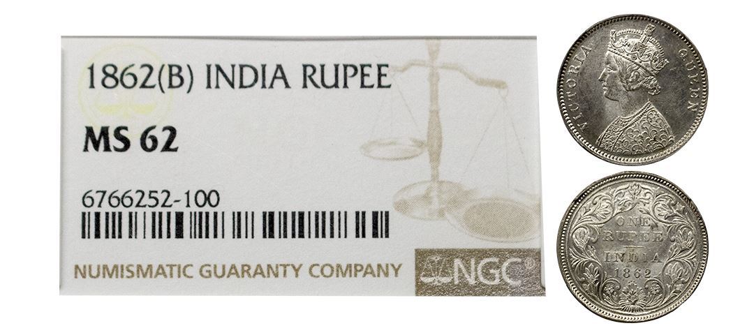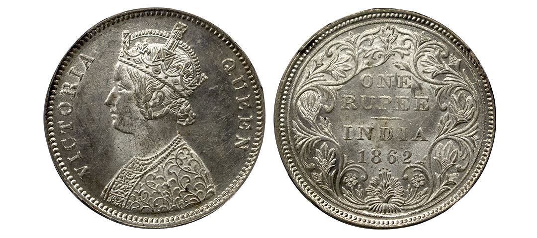 Victoria Queen, silver rupee, 1862, Bombay mint, A/II/0/4, without initial J, PR 79; GK 308.