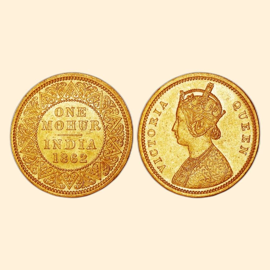 Victoria Queen, Gold One Mohur, Calcutta Mint, 1862. Extremely Fine, Extremely Rare.