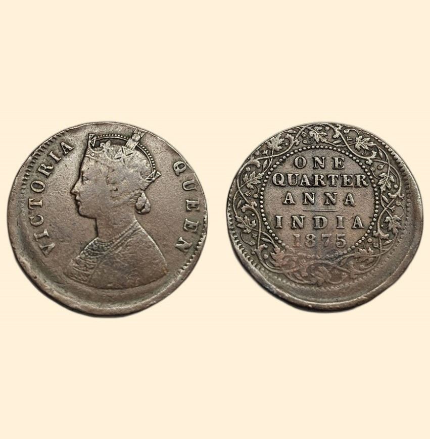 Victoria Quenn, One Quarter Anna 1875, die shifting on both sides, good, scarce.