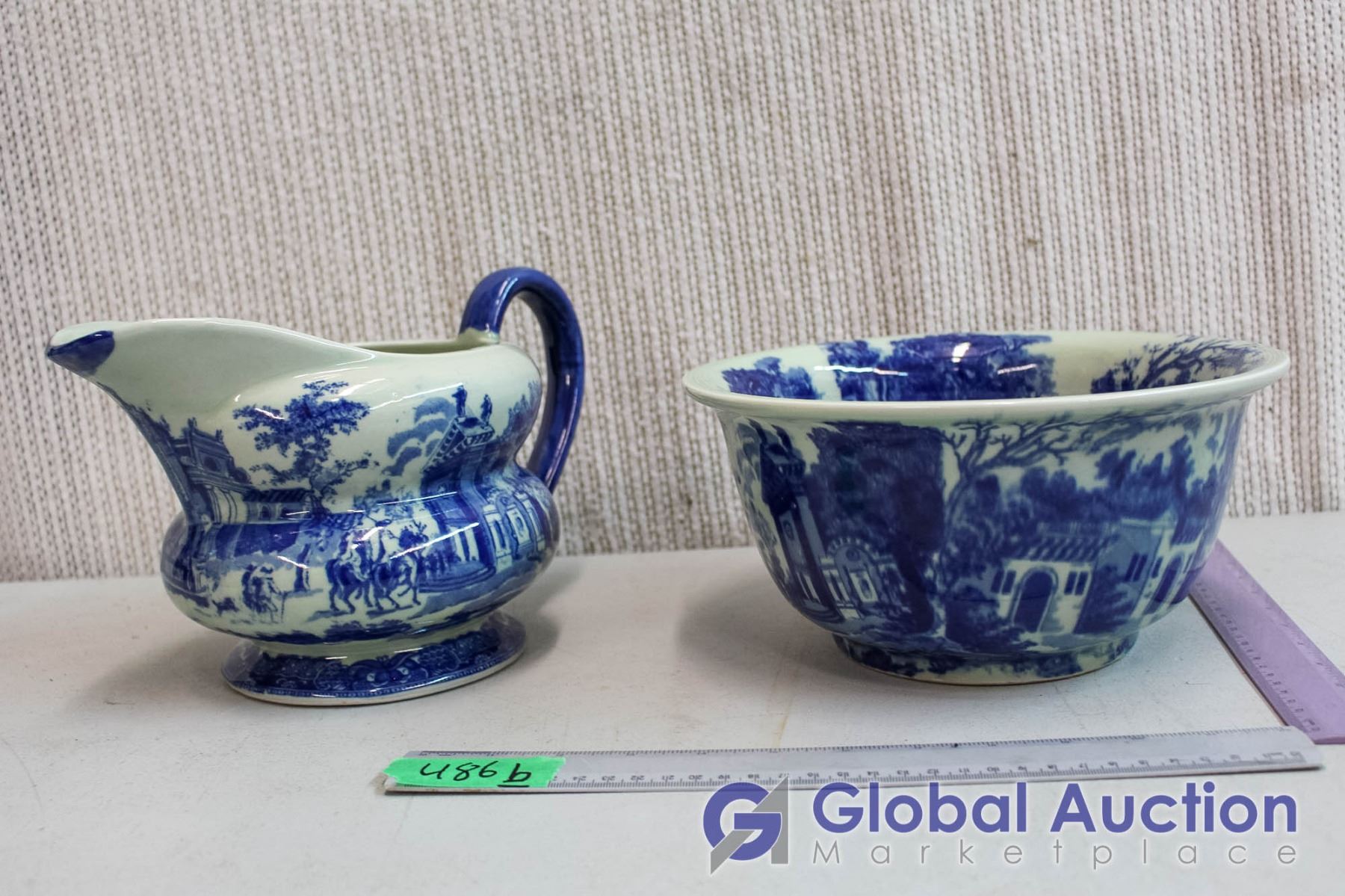 Victoria Ware Ironstone Blue Bowel & Pitcher