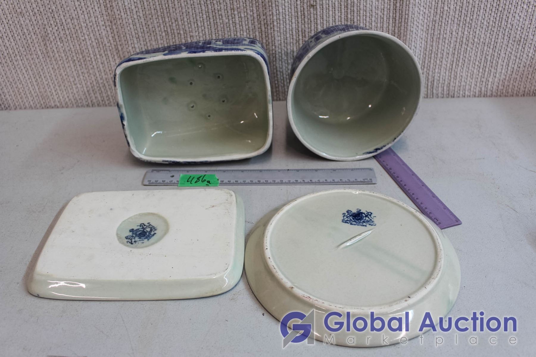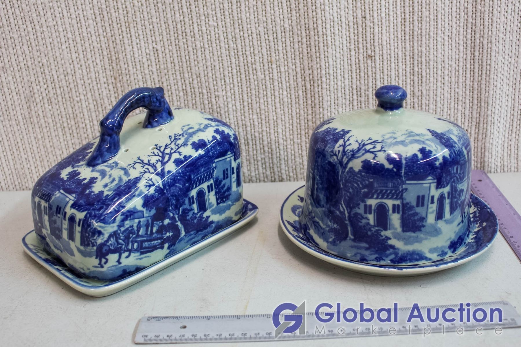 Victoria Ware Ironstone Blue Loaf Plate with Cover & Cake Plate with Cover