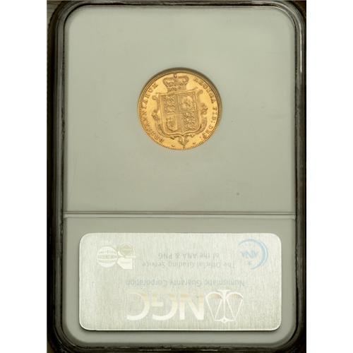 <B>Victoria gold 1/2 Sovereign 1881S, </B></I>KM5, AU53 NGC RBA, gleaming mint luster with just a few faint obverse scratches, barely noticeable.<BR><BR><b>Shipping:</b> Coin/Currency (<a target="_blank" href="http://www.heritageauctions.com/common/shipping.php">view shipping information</a>)