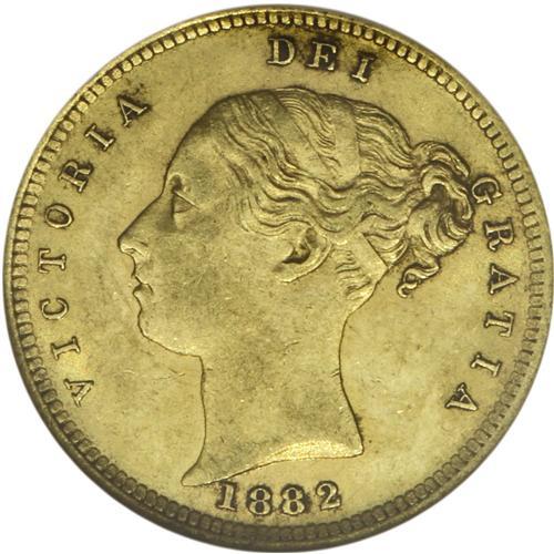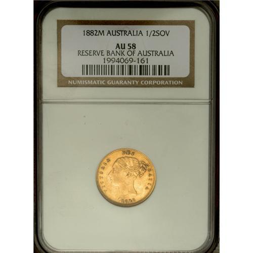 Victoria gold 1/2 Sovereign 1882M, KM5, AU58 NGC RBA, a
