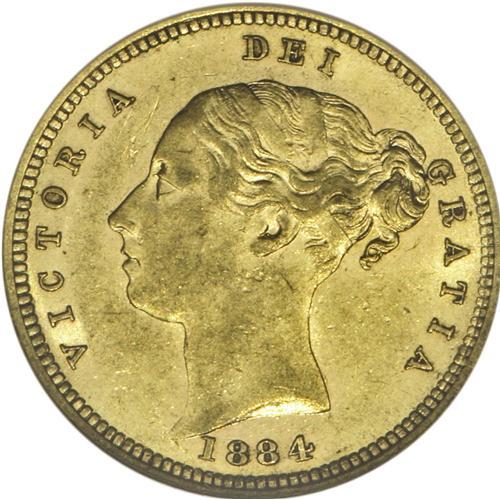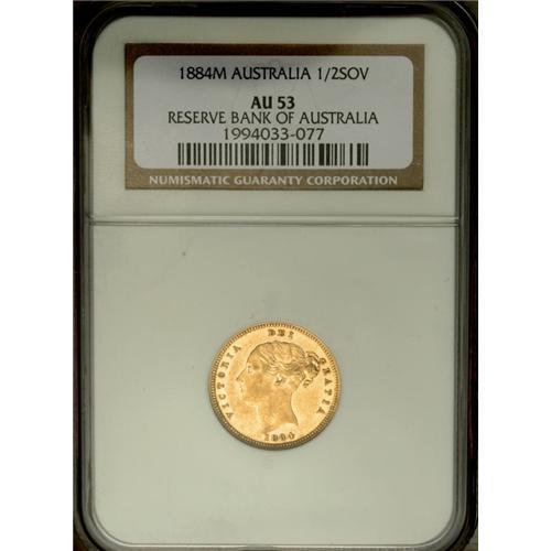 Victoria gold 1/2 Sovereign 1884M, KM5, AU53 NGC RBA, a